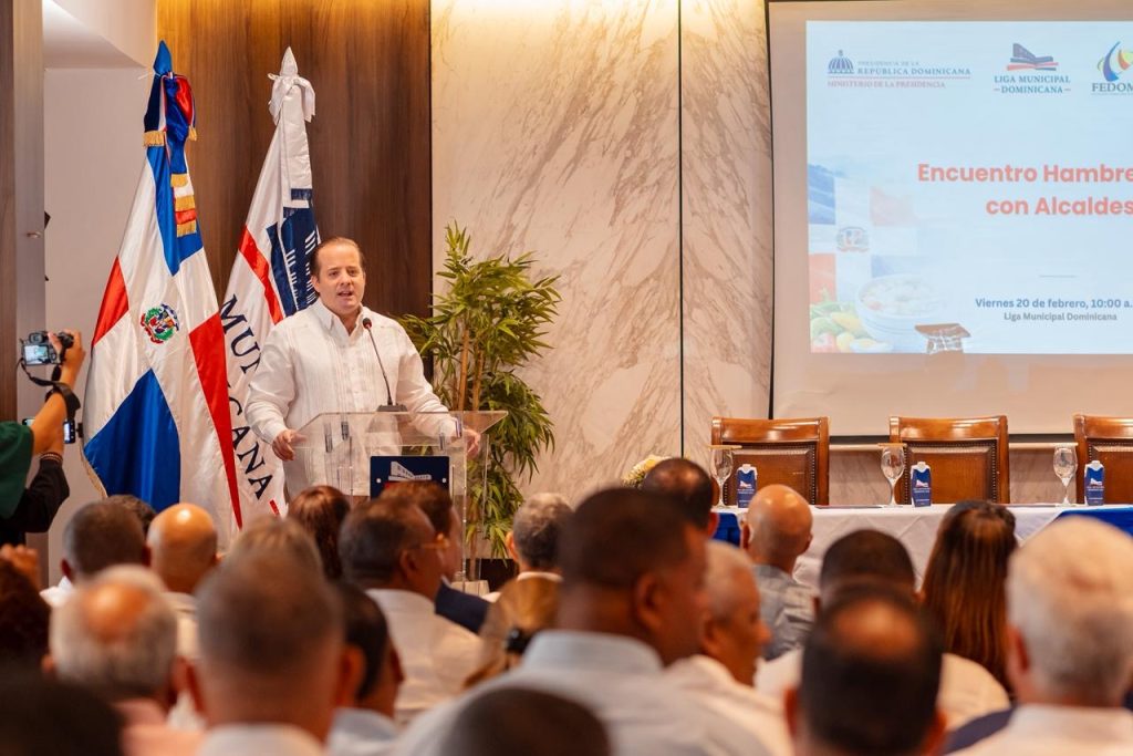 Santo Domingo, 20 de febrero de 2026.– El ministro de la Presidencia, José Ignacio Paliza, encabezó este jueves la integración formal de 120 alcaldes y alcaldesas de todo el país a la política nacional de erradicación del hambre, consolidando una alianza estratégica entre el Gobierno central y los gobiernos locales para acelerar la meta de Hambre Cero en la República Dominicana.