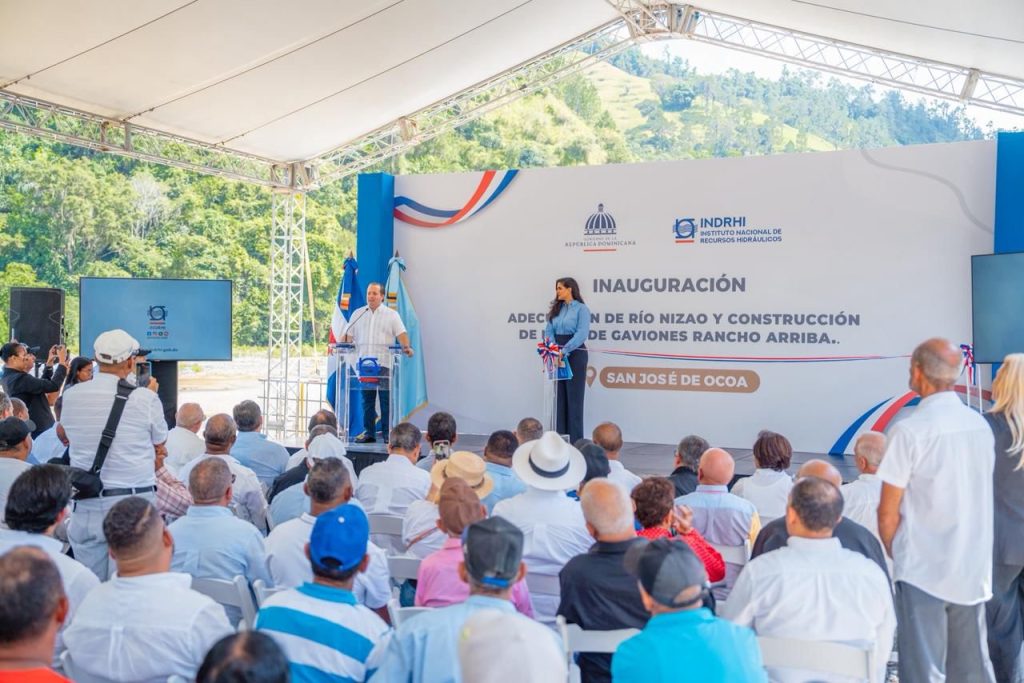 San José de Ocoa, 19 de octubre de 2025.- El ministro de la Presidencia, José Ignacio Paliza, y el director ejecutivo del Instituto Nacional de Recursos Hidráulicos (INDRHI), Olmedo Caba Romano, encabezaron este domingo la inauguración de los trabajos de adecuación del río Nizao y la construcción de muros de gaviones en el municipio de Rancho Arriba, provincia San José de Ocoa, con una inversión ascendente a RD$219,978,471.49, que beneficia directamente a cientos de familias.