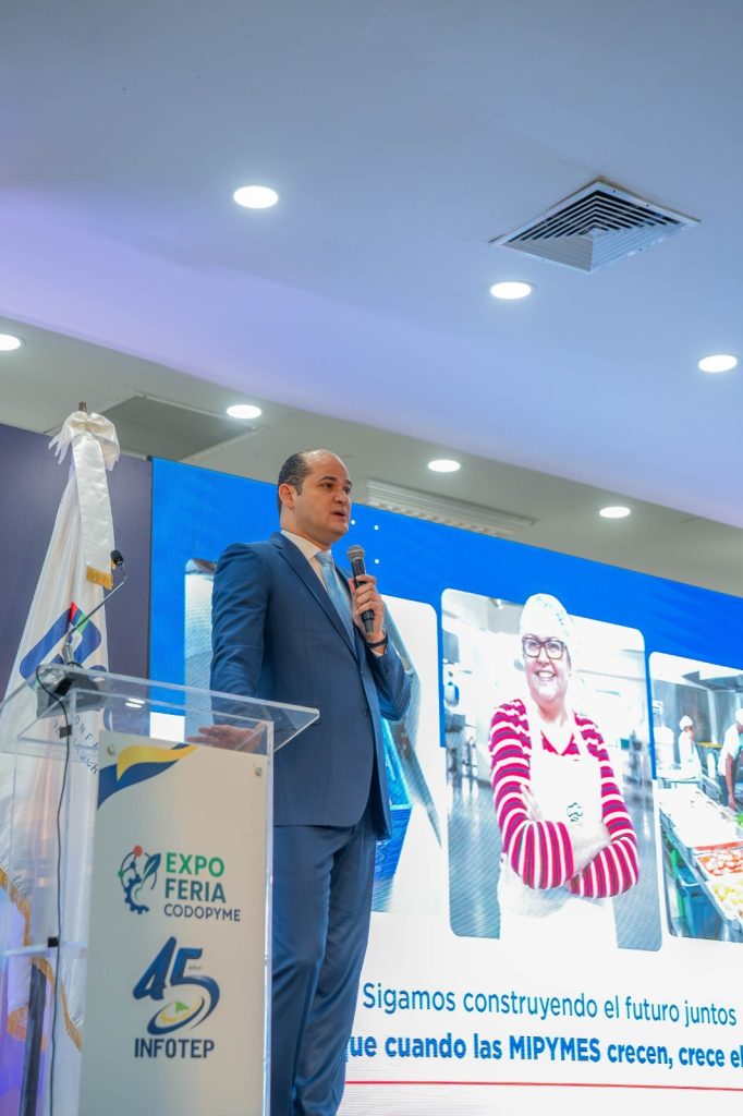 Al exponer en la Expo Feria CODOPYME 2025, Pérez subrayó que 2,500 Mipymes brindan servicios al INABIE, “lo cual la convierte en una de las entidades públicas que más oportunidades genera para emprendedores y productores locales, impulsando encadenamientos comerciales y contribuyendo al dinamismo económico en todo el país”.